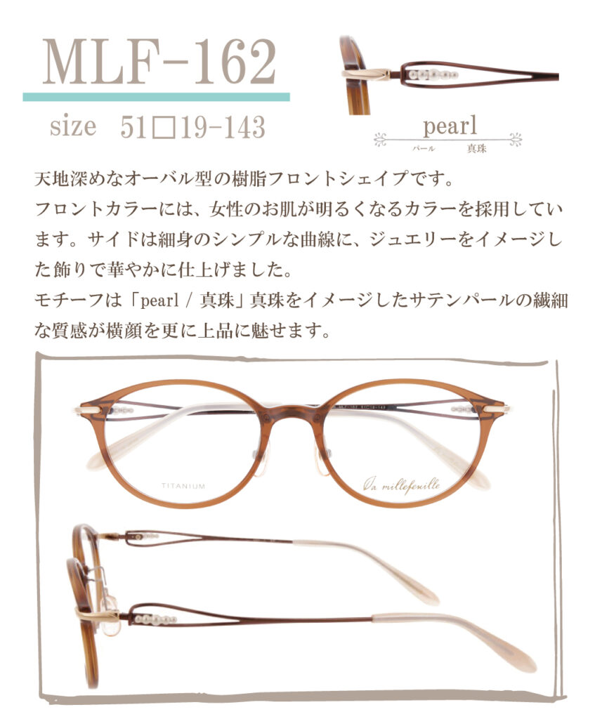 MLF-162 2026.02.20 Col.1 ブラウン・ゴールド/ブラウンCol.2 ワイン・ゴールド/アプリコットピンクCol.3 パープル・グレースゴールド/グレージュマットCol.4 グレー・ピンクゴールド/ブラック ◀ MLF-161 MLF-163 ▶