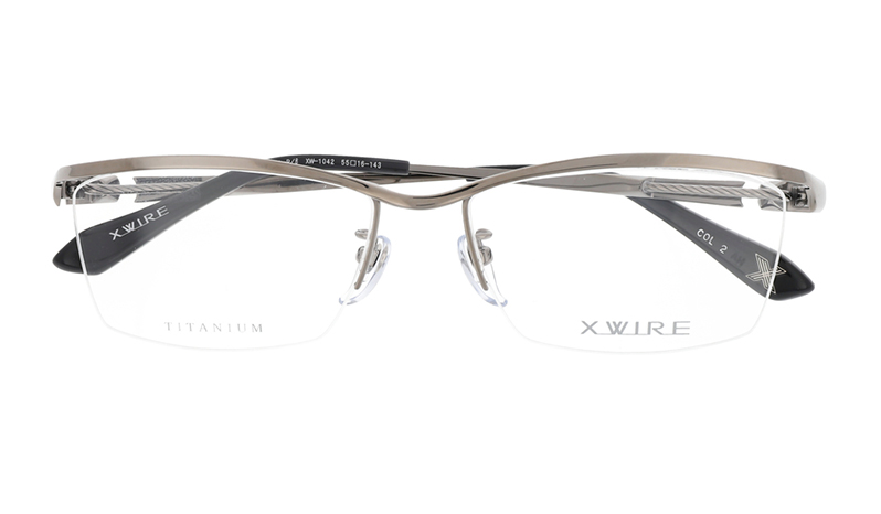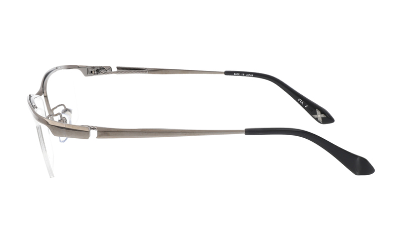 A sleek top bar extends from the front to the temples, creating a stylish half-rim style. The U-shaped wire provides a unique flexibility and comfortable fit. The metal inlay logo is placed on the inside of the right temple tip.